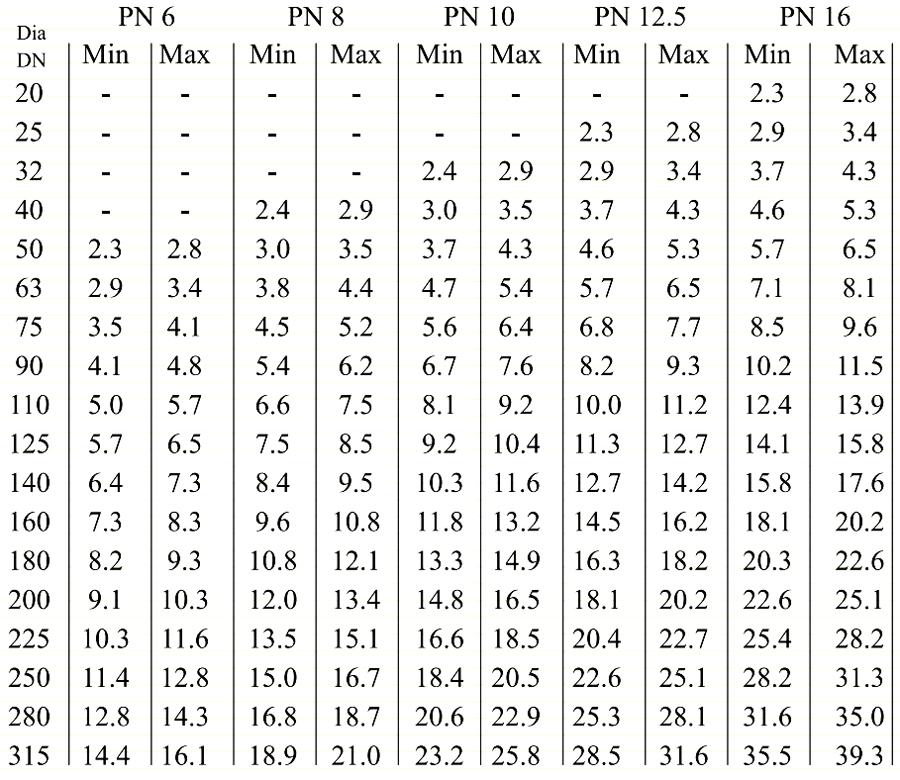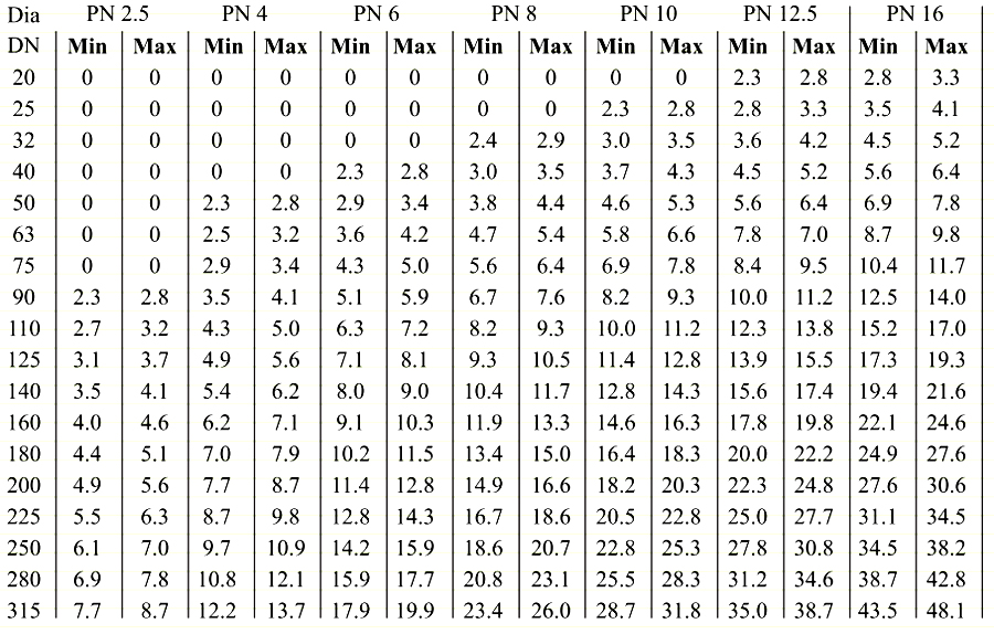 | Up to 90 Mtrs | 6.0 kg/cm2 |