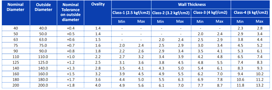 | 63mm to 200mm | Diameter and pressure rating class 1,11,111 and Part land Pad II |